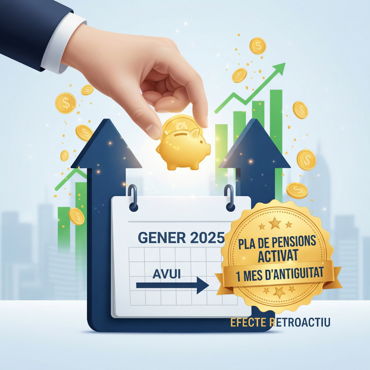 - Quan ho veuré reflectit? Les aportacions corrents s’aplicaran des del mes d’alta al pla (després del primer mes d’antiguitat). La regularització de 2025 es comunicarà i aplicarà segons el calendari intern, i haurà de ser visible als extractes del pla o als justificants que emeti l’entitat gestora.